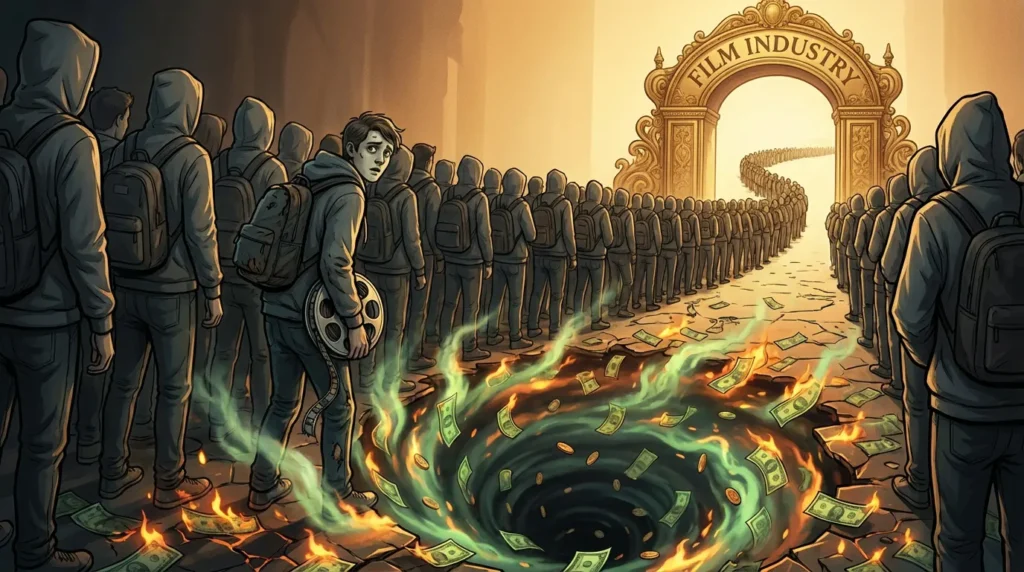 Step 1: भारी फीस: आप किसी बड़े फिल्म इंस्टिट्यूट में लाखों रुपये की फीस देकर एडमिशन लेते हैं।